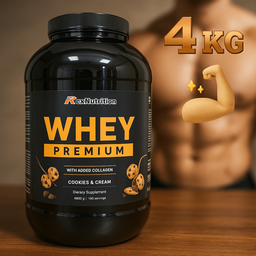 Otkrijte vrhunski "Rex Nutrition" Premium Whey, protein koji postavlja nove standarde u prehrani sportaša i entuzijasta fitnessa. Ovaj visokokvalitetni protein kombinira whey koncentrat, whey hidroizolat i hidrolizirani goveđi kolagen, pružajući vam idealnu podršku za rast i oporavak mišića.