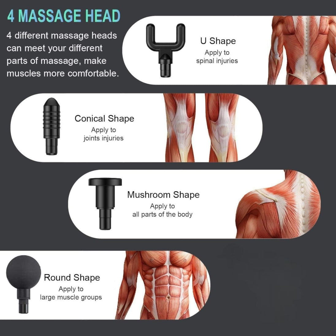 • Duboka i Ciljana Masaža: Masažer u obliku pištolja omogućava ciljano opuštanje mišića. Različiti nastavci omogućavaju vam da targetirate specifične mišićne grupe, što pomaže u oslobađanju napetosti i bolova.