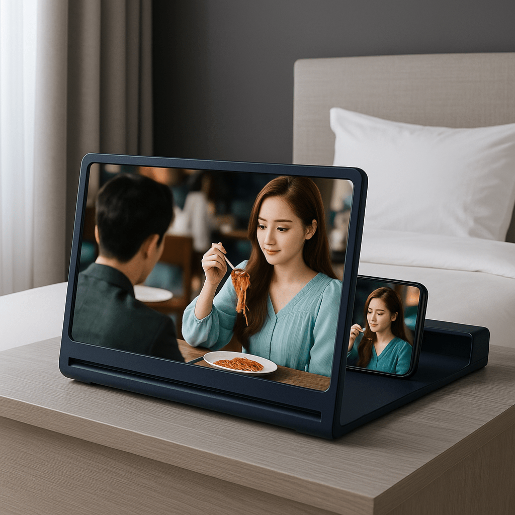 1. Povećalo Zaslona s Bluetooth Zvukom: Pojačajte svoje iskustvo gledanja mobilnog ekrana s ugrađenim Bluetooth zvučnicima koji pružaju stereo zvuk visoke razlučivosti.