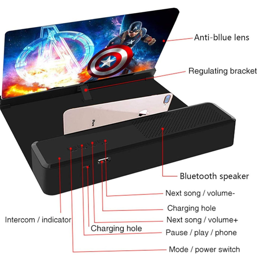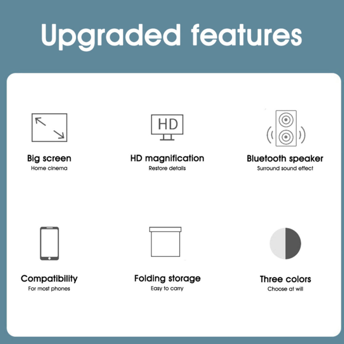 Osvježite svoje iskustvo gledanja s našim 3D Povećalom za Mobitel, obogaćenim Bluetooth zvučnikom. Približite se svakom detalju i uživajte u vrhunskom zvuku s ovim inovativnim uređajem. Evo zašto će vam naše povećalo pružiti nevjerojatno iskustvo: