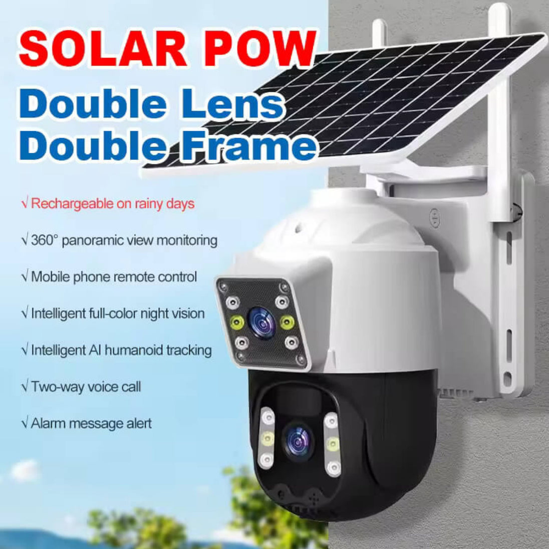Unaprijedite svoj sustav nadzora s 4K 8MP Solarnom Dvostrukom Kamerom 4G Sim Kartica, vrhunskim rješenjem za pouzdano daljinsko praćenje u bilo kojem okruženju. Ova napredna kamera opremljena je najnovijim tehnologijama, uključujući praćenje ljudskog kretanja, detekciju pokreta i otpornost na vremenske uvjete, što je čini idealnim izborom za vanjsku uporabu.