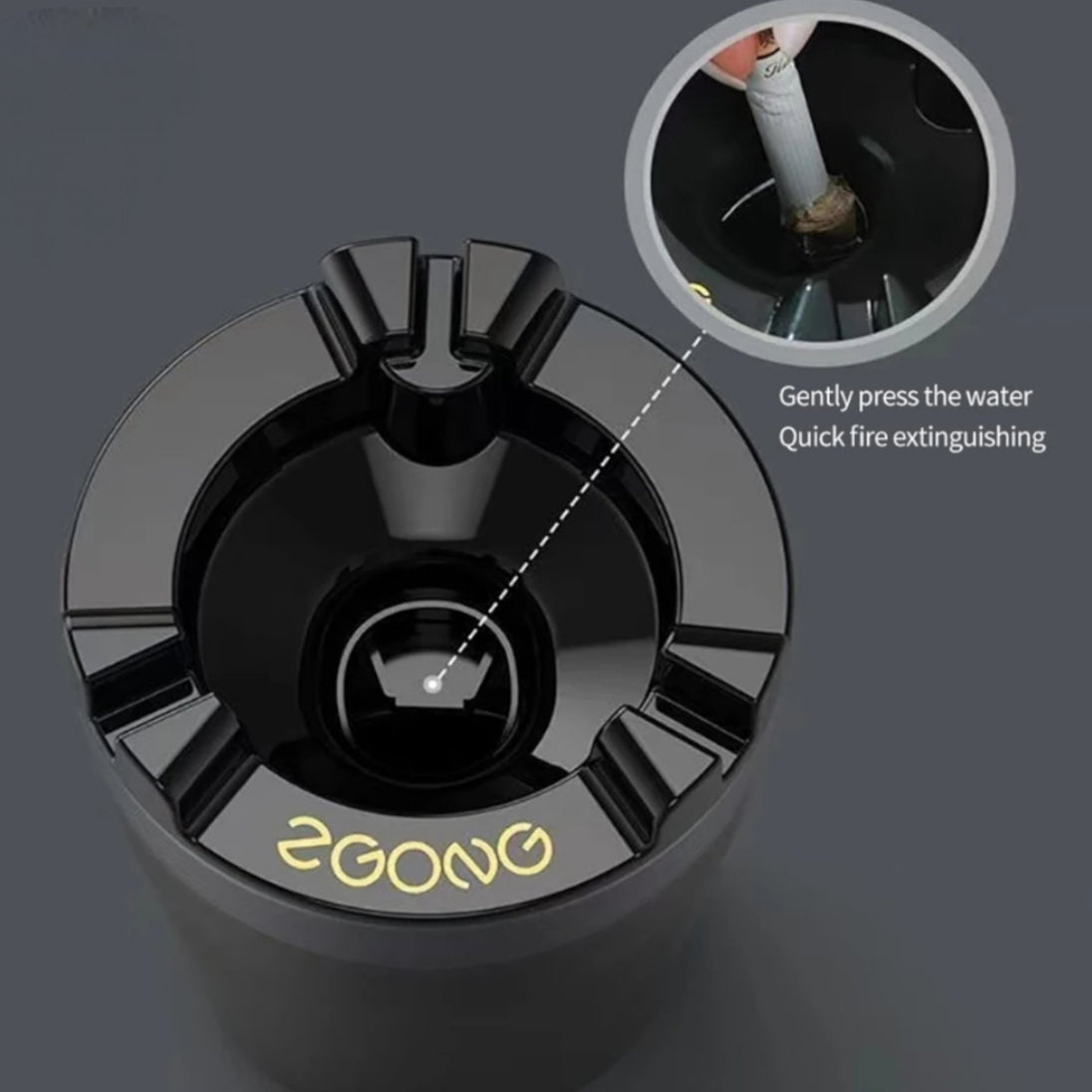 - Praktičnost: Pritisnite jezičac za oslobađanje vode kako biste brzo ugasili cigarete i eliminirali dim u samo jednoj sekundi.