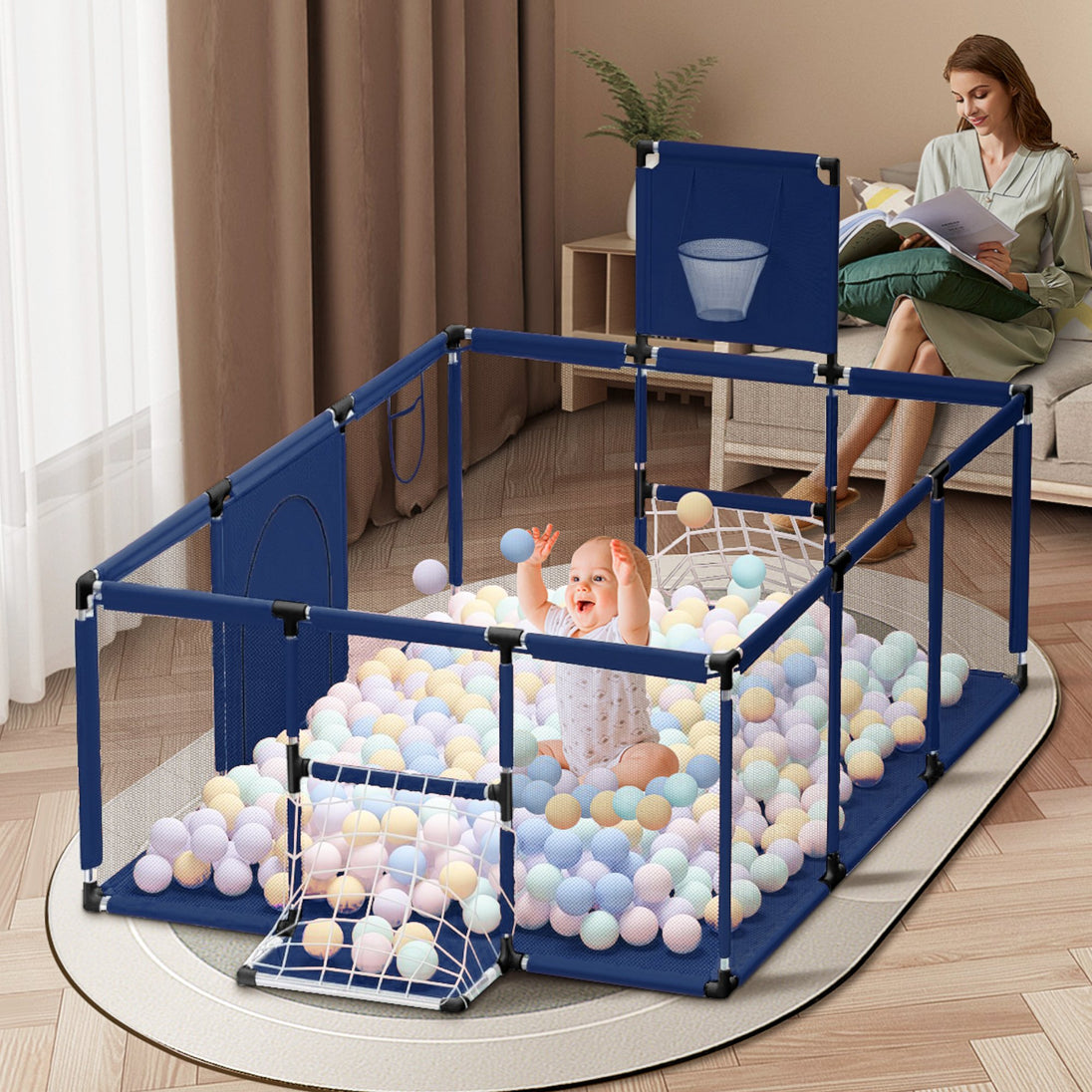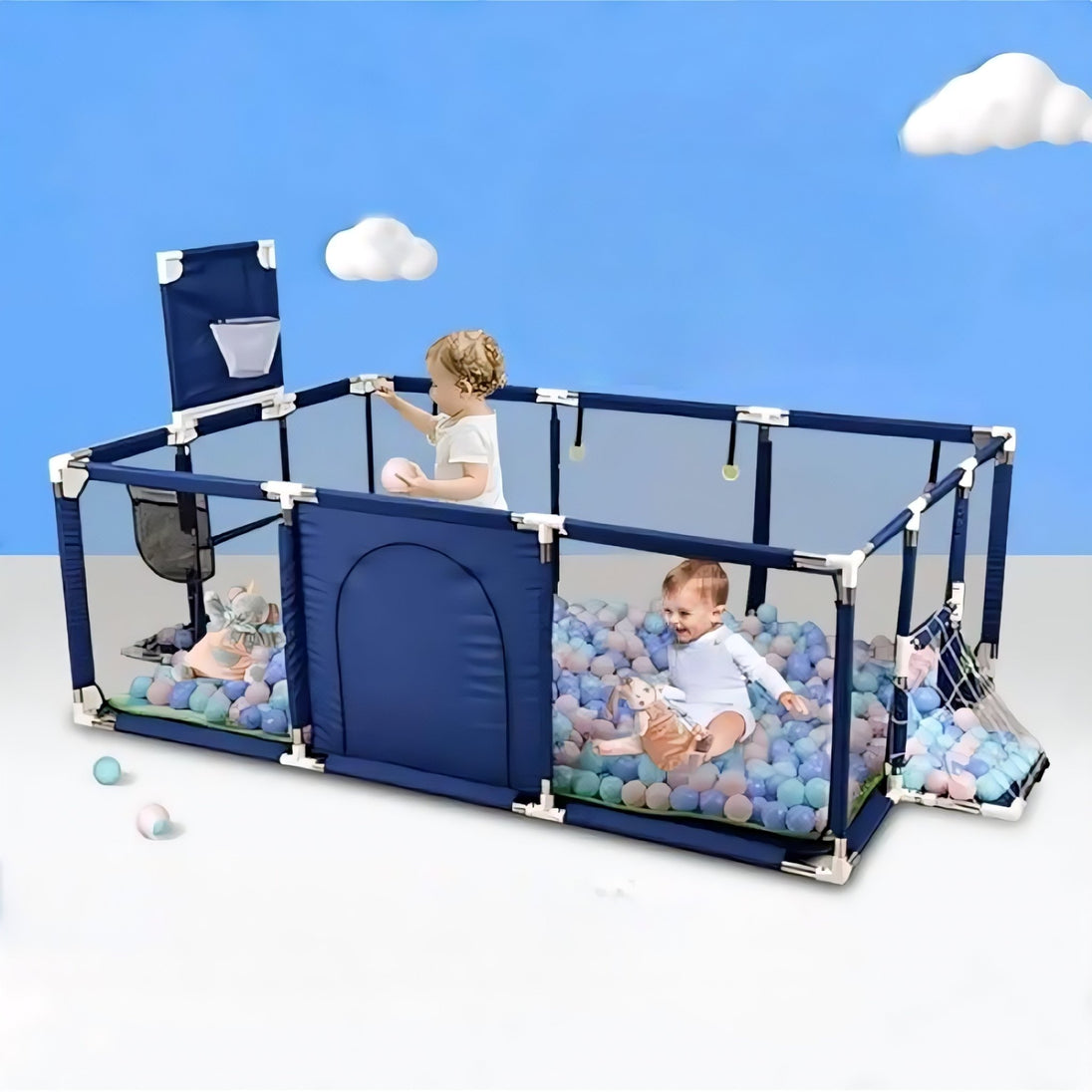 Omogućite svom djetetu sigurno i zabavno okruženje uz Baby igraonu s nogometom i košarkom! Ova višenamjenska dječja ogradica dizajnirana je kako bi potaknula fizičku aktivnost i razvoj vještina timske igre, dok roditeljima pruža mir i sigurnost.