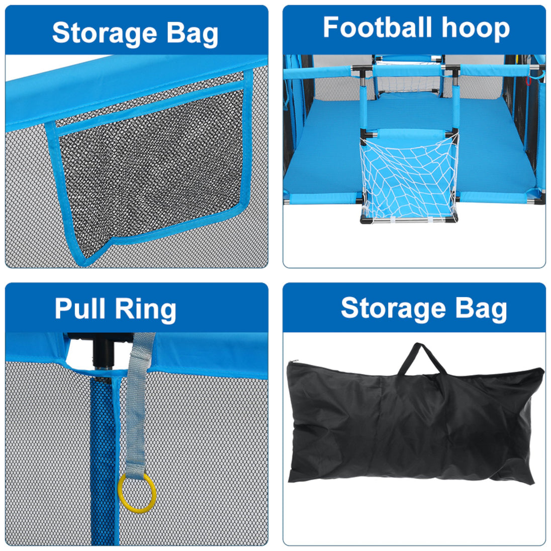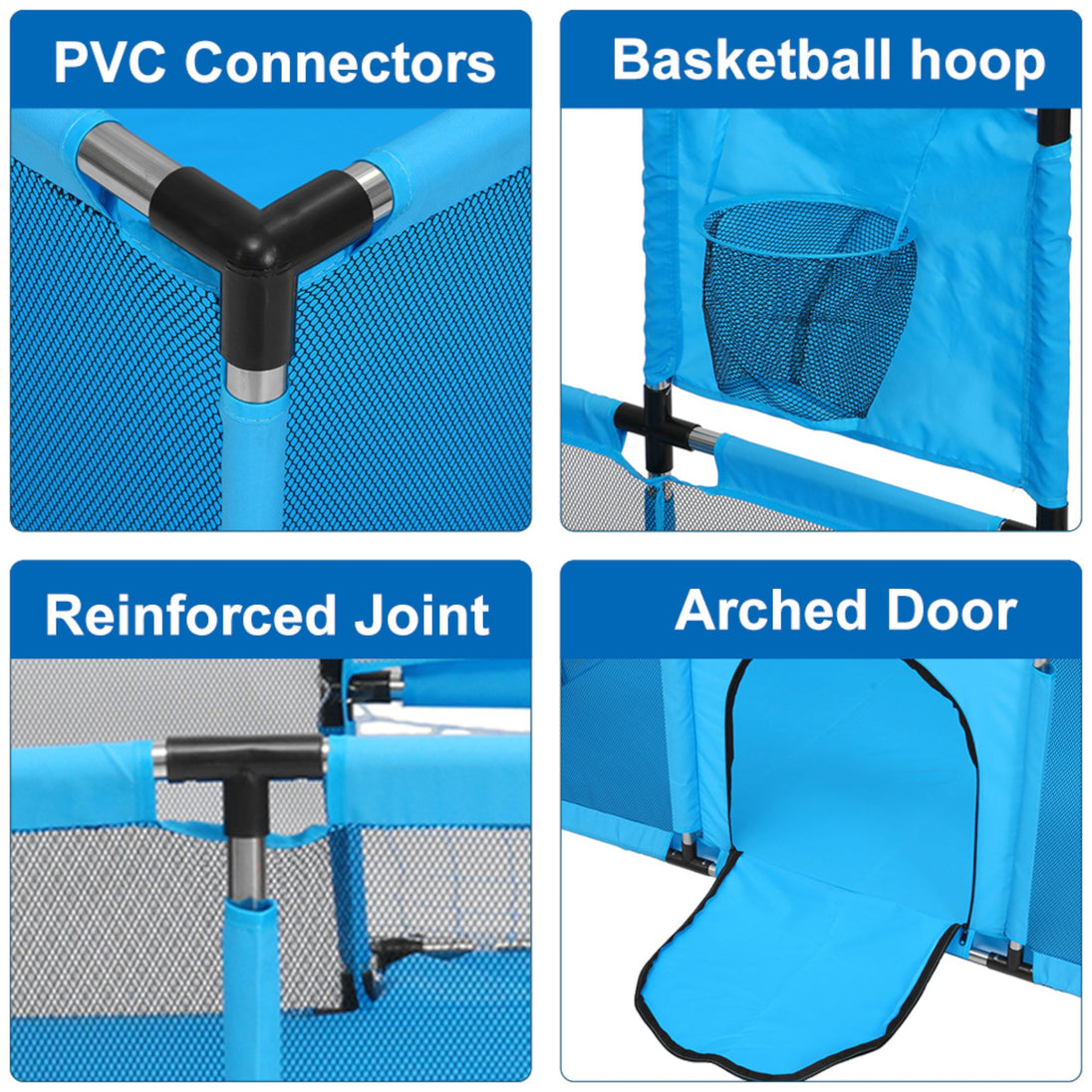 - Višenamjenska zabava: Ogradica dolazi s integriranim košarkaškim obručem i nogometnim golom, što omogućuje djeci da se igraju i vježbaju motoričke vještine kroz zabavne sportske aktivnosti.