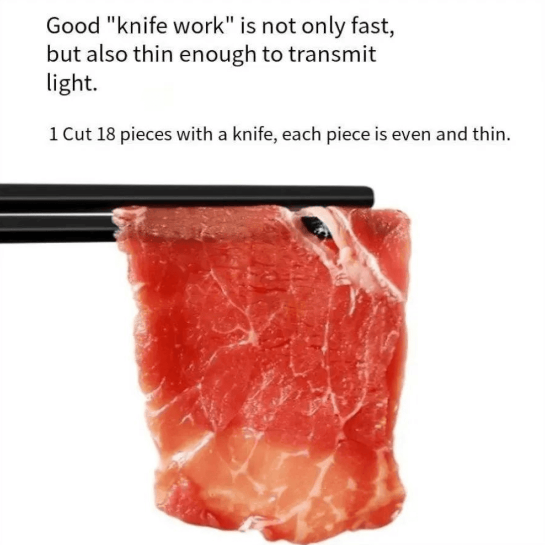 - Izuzetna brzina rezanja: Zahvaljujući 17 oštrica, u samo jednom potezu narežite 18 jednakih komada mesa.