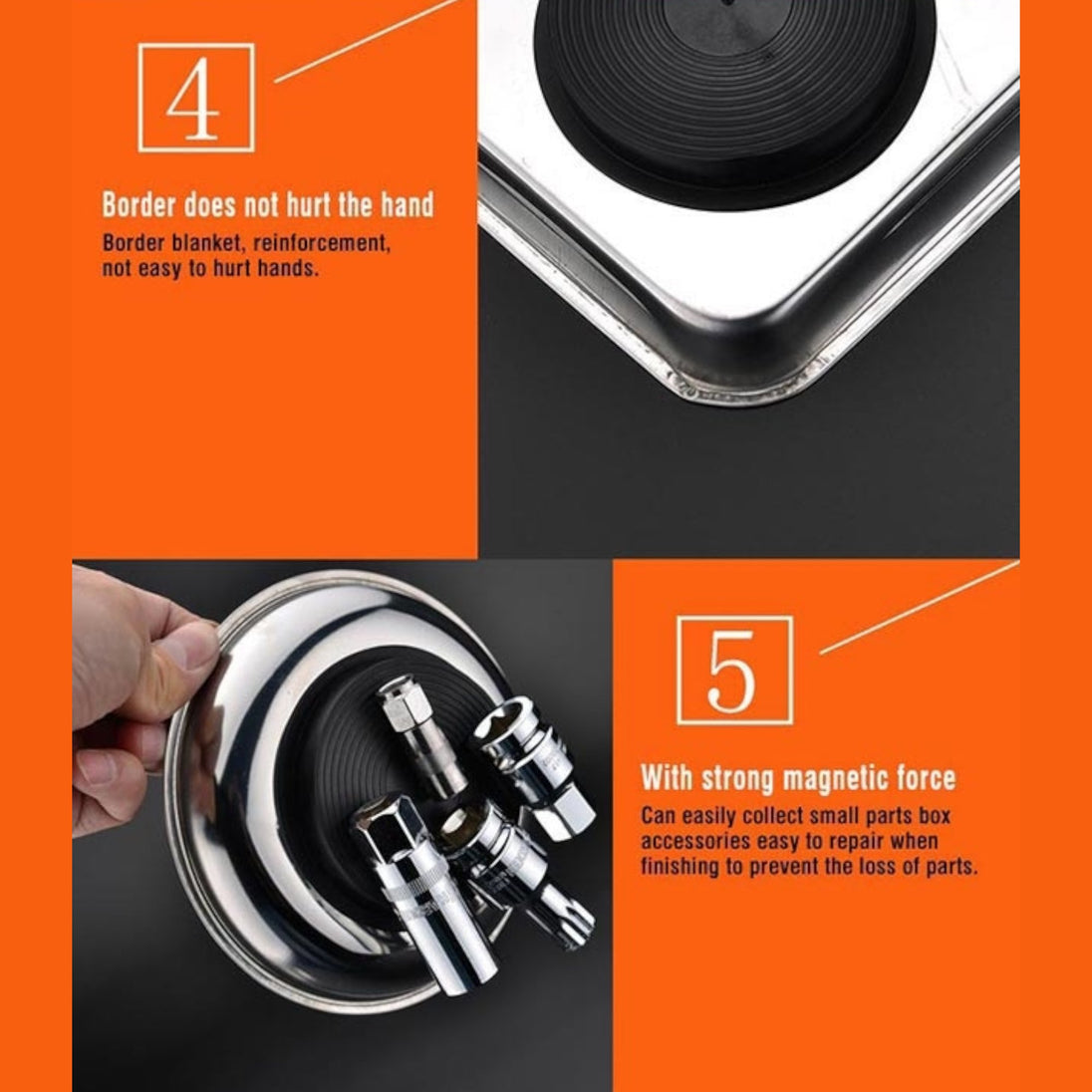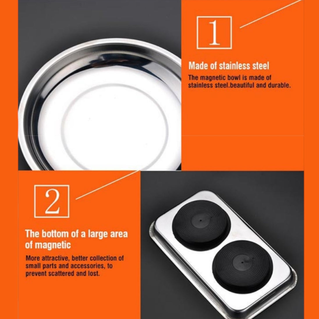 Ova dupla magnetna posudica je neophodan dodatak za svaku radionicu ili kućnu radionicu. Njezina snažna magnetna površina osigurava da se sitni dijelovi ne izgube tijekom popravaka, čineći vaš rad bržim i efikasnijim. Uz ovu posudicu, možete biti sigurni da će vaši dijelovi biti sigurni i lako dostupni tijekom popravaka.