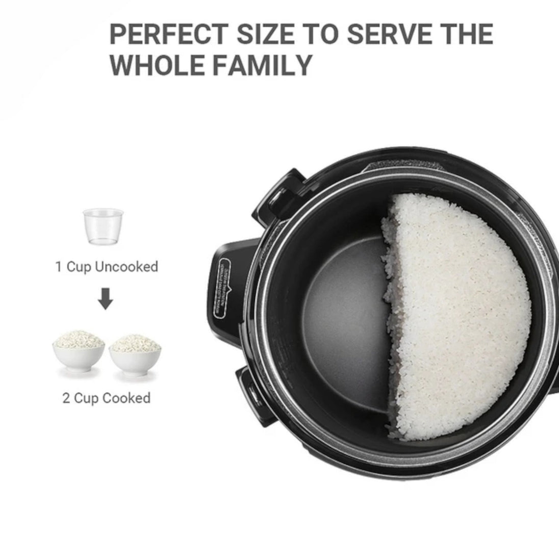 Ovaj električni ekspres lonac također dolazi s dodatnim priborom poput rešetke za kuhanje na pari, mjernog klupa i lopatice, te uz njega možete dobiti i knjižicu recepata koja će vam pomoći u pripremi različitih jela.