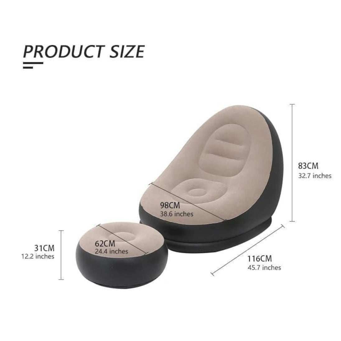 Otkrijte savršenu kombinaciju stila, praktičnosti i udobnosti uz Intex Ultra Lounge – luksuznu fotelju s tabureom na napuhavanje, idealnu za unutarnju i vanjsku upotrebu. Bilo da se opuštate u dnevnom boravku, na terasi ili kampirate u prirodi, ovaj set pruža vrhunski komfor i moderan izgled.