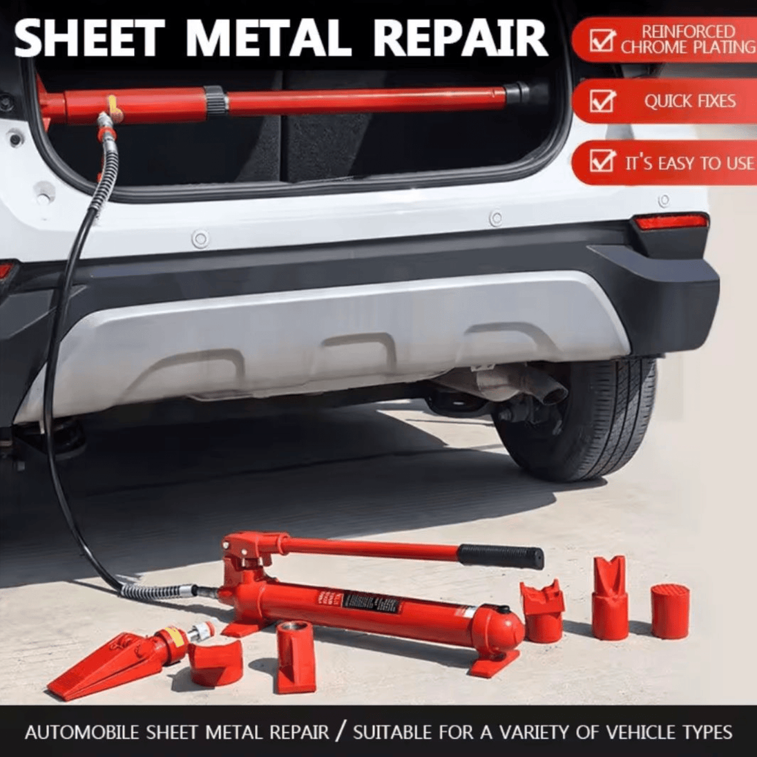 Tražite moćan i pouzdan alat za popravke na limariji vozila? Naša hidraulična presa za limare (10 tona) savršeno je rješenje za sve vrste izvlačenja, poravnavanja i popravljanja karoserijskih dijelova. Ovaj hidraulični set je neizostavan alat u svakoj autolimarskoj radionici, kao i kod majstora koji žele brz i efikasan rad bez oštećenja vozila.