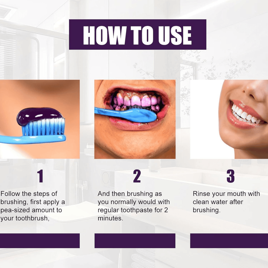 Postignite osmijeh koji zrači samopouzdanjem uz Ljubičastu Pastu za Izbjeljivanje Zuba — vaša dnevna rutina za blistavo bijele zube i svjež dah!