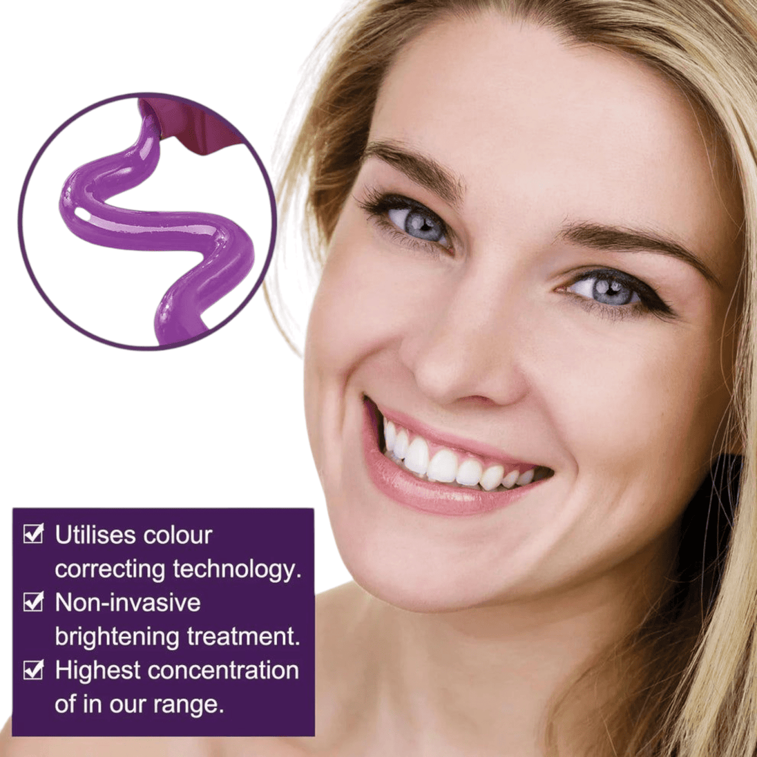 Otkrijte tajnu biserno bijelih zuba uz našu Ljubičastu Pastu za Izbjeljivanje Zuba! Kombinacija efikasnosti i njege donosi vam savršen osmijeh i dugotrajan osjećaj svježine.