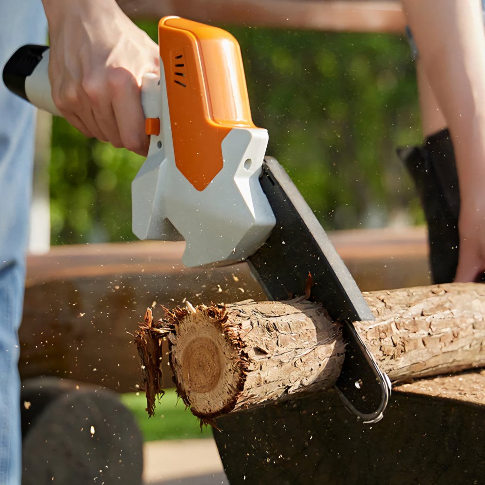 Ova prijenosna električna lančana pila idealna je za ručno obrezivanje mladog drveća, grana, grmlja i raznih drvenih materijala. Bilo da je u vrtu ili na otvorenom tijekom planinarenja ili piknika, ova mini pila pruža praktičnost i svestranost gdje god je potrebno.