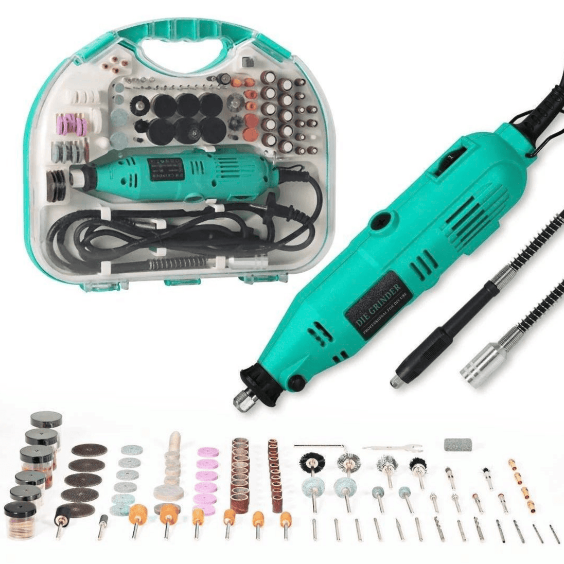 ✅ Veliki set dodataka – uključuje brusne diskove, glodala, svrdla, nastavke za poliranje, četke i još mnogo toga