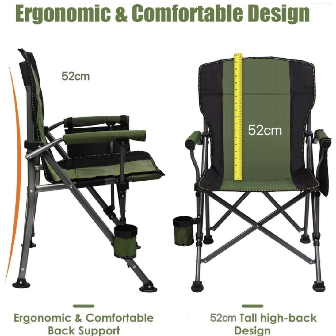 Izrađena od dvostrukog sloja 600D obloženog oxford platna i jakog nehrđajućeg čeličnog okvira, ova stolica podržava do 150 kg, pružajući stabilnost i sigurnost tijekom korištenja.