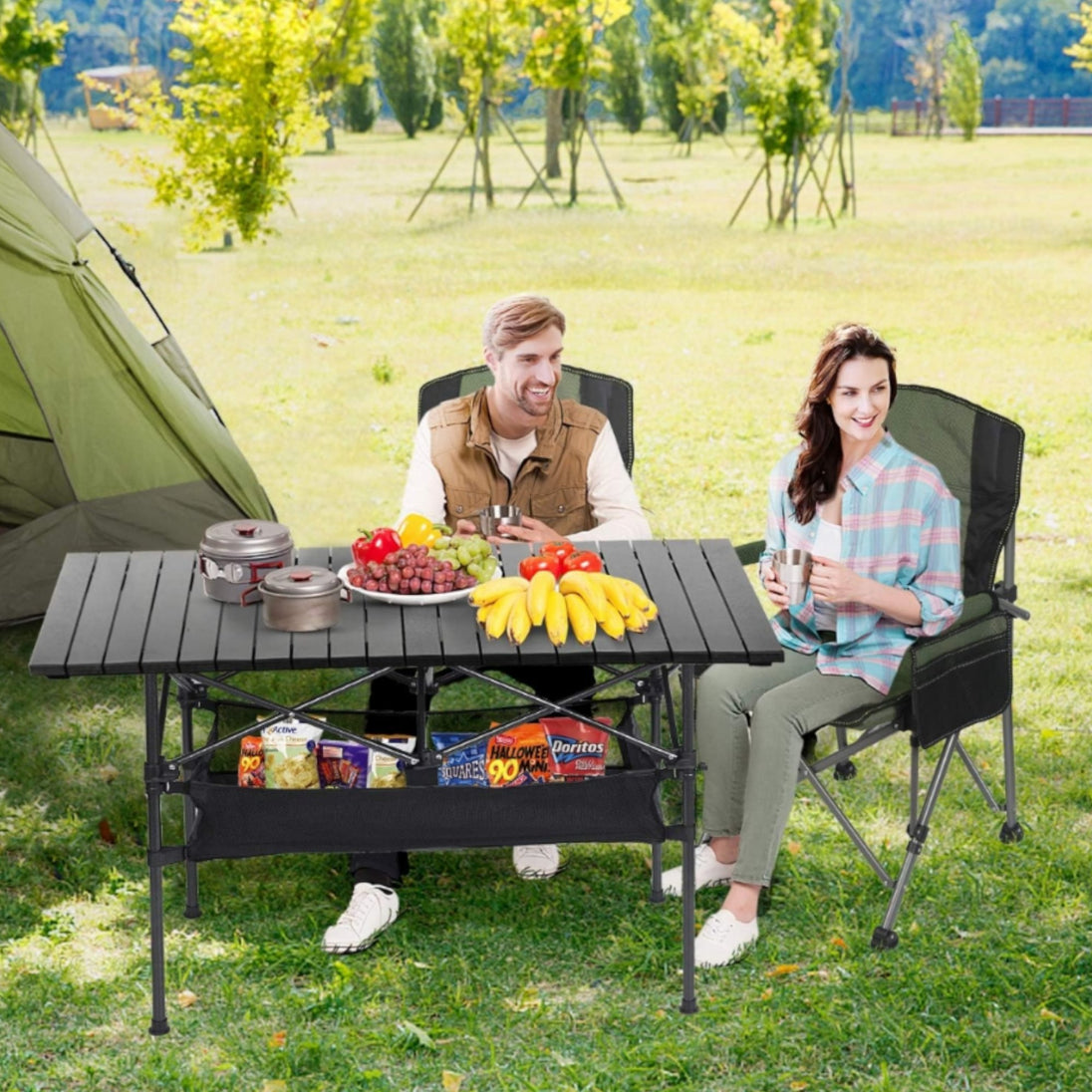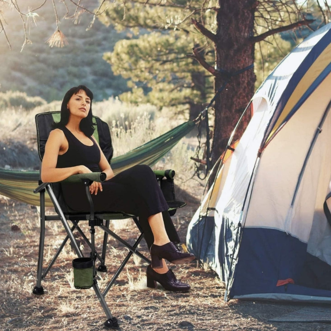 Naša preklopna kamping stolica nudi veliku površinu za sjedenje i visoki naslon koji osigurava maksimalnu udobnost. Težine samo 4.5 kg, lako je prenosiva i pogodna za sve vaše avanture na otvorenom.