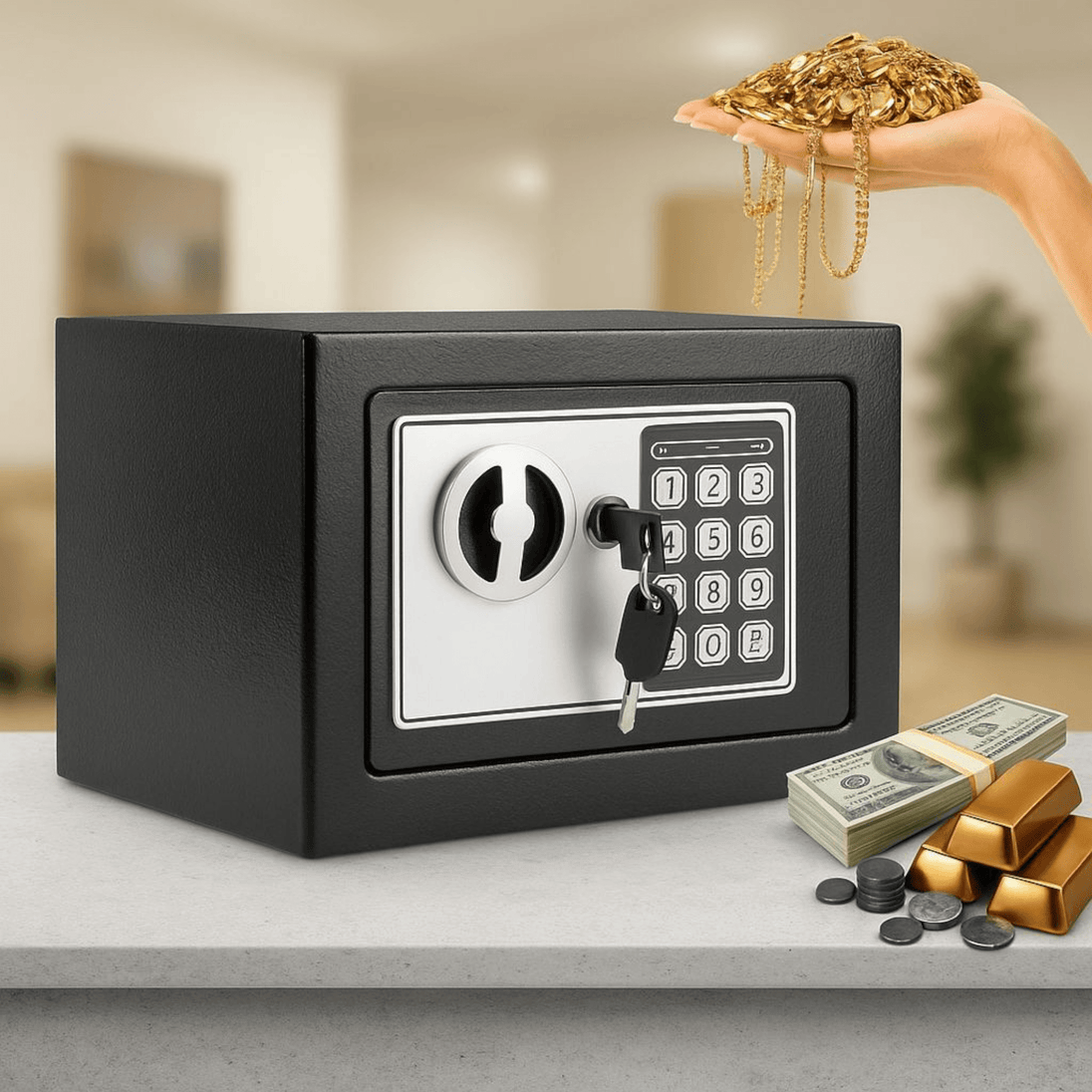 S našim sigurnosnim električnim sefom možete biti sigurni da su vaši predmeti zaštićeni na najvišoj razini. Bilo da se radi o novcu, dragocjenostima ili važnim dokumentima, ovaj sef pruža pouzdanu zaštitu s jednostavnom elektronskom bravom, mehaničkom opcijom za nuždu i mogućnostima pričvršćivanja na zid ili pod.